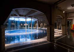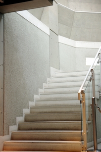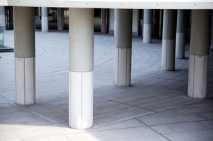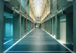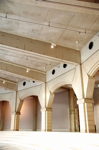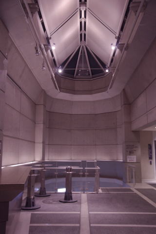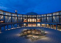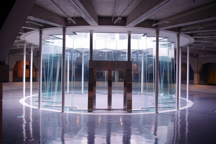 列柱と半透明のガラスブロックで取り囲まれ、劇場の中央に位置する円形広場や、ガラス屋根から自然の光が入る幅5m、長さ100mにも及ぶ通路